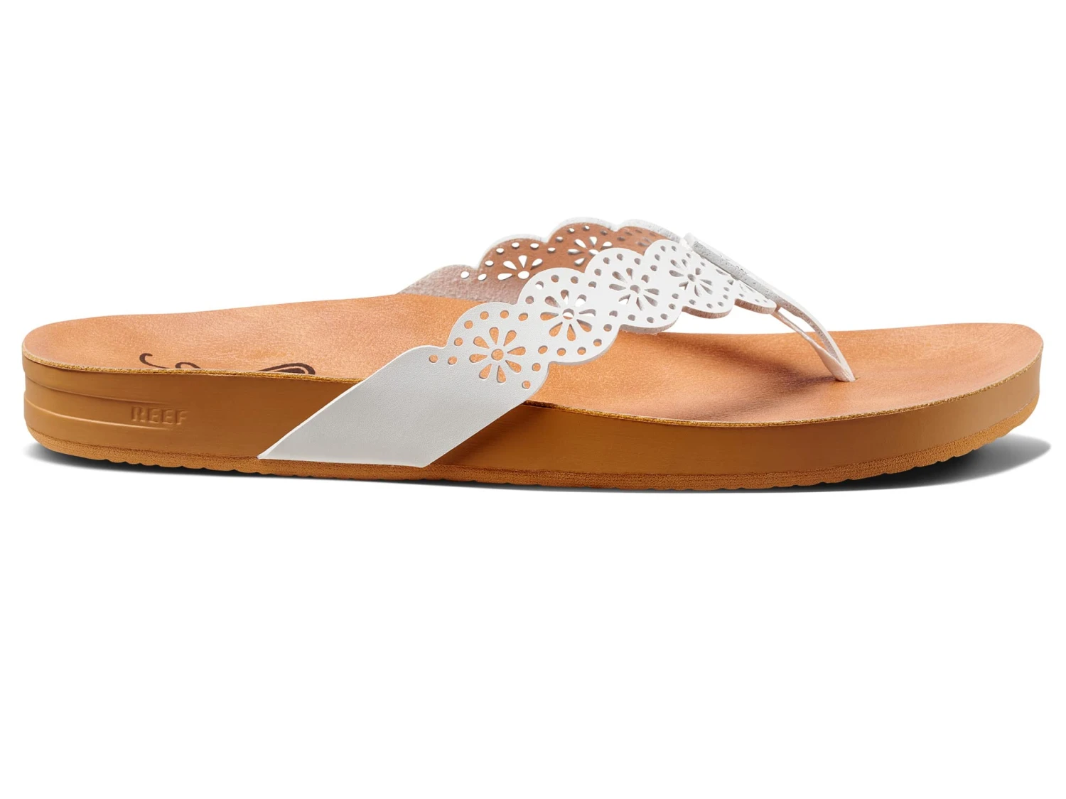 - Embrace the spirit of the beach when you wear the Reef® Cushion Scallop Celine sandals.