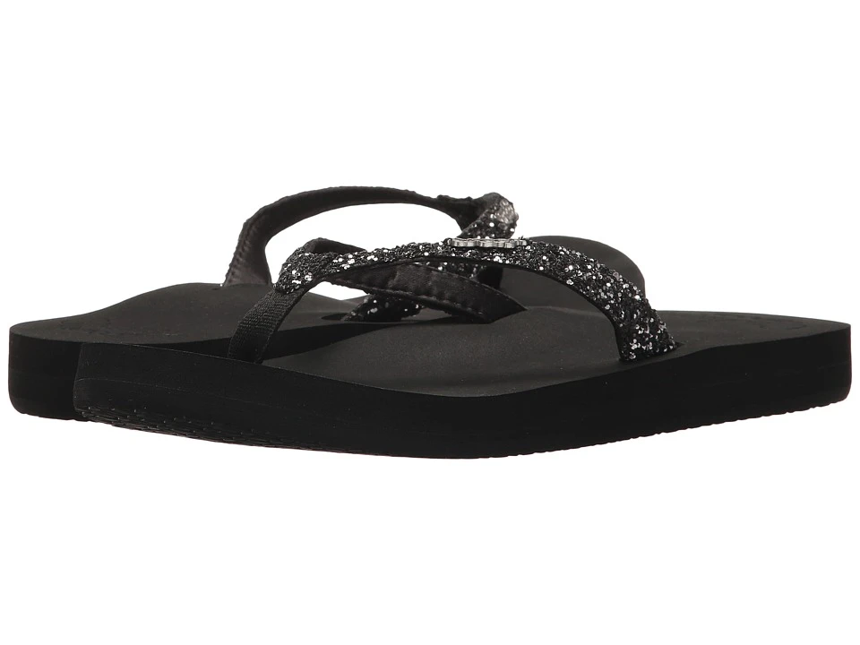 Your rise to fame has to start somewhere. Before you can have a posse a constant trail of paparazzi and the gossip columns making up things about you you first need a solid foundation like the Star Cushion from Reef. With its ridiculous comfort and eye-catching sheen it might inspire you to top the charts and be an A-list sensation! A sparkly synthetic strap with soft satin lining. Super soft and cushy EVA with anatomical arch support. Rubber sponge outsole for enhanced flexibility. Measurements: Heel Height: 1 in Weight: 4 oz Platform Height: 3 4 in Product measurements were taken using size 6 width B – Medium. Please note that measurements may vary by size. Weight of footwear is based on a single item not a pair.